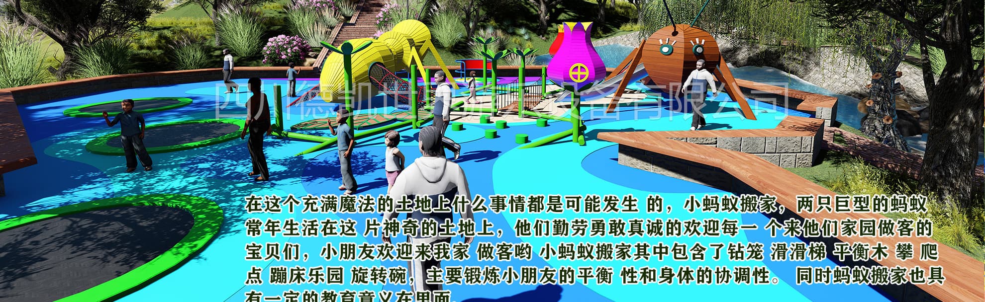 我們是一家主要為文旅地產,旅游景區,特色小鎮,田園綜合體,生態農莊,,市政公園,研學旅行基地,商業住宅,水上世界,兒童探索館等提供IP設計、創意規劃、場地設計、產品定制、研發生產,銷售安裝、運營策劃、售后服務為一體的無動力兒童游樂設施生產廠家。