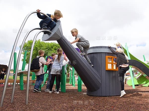 戶外游樂園不僅僅是游戲的空間,它被賦予更多的功能,幫助兒童各個階段成長有積極的作用,比如跑、跳、攀爬、摸、走、滑等行為活動,既能鍛煉身體,也能在游玩過程中學習生活技能,培養孩子的責任心、自控能力、協同團結、解決問題的能力。