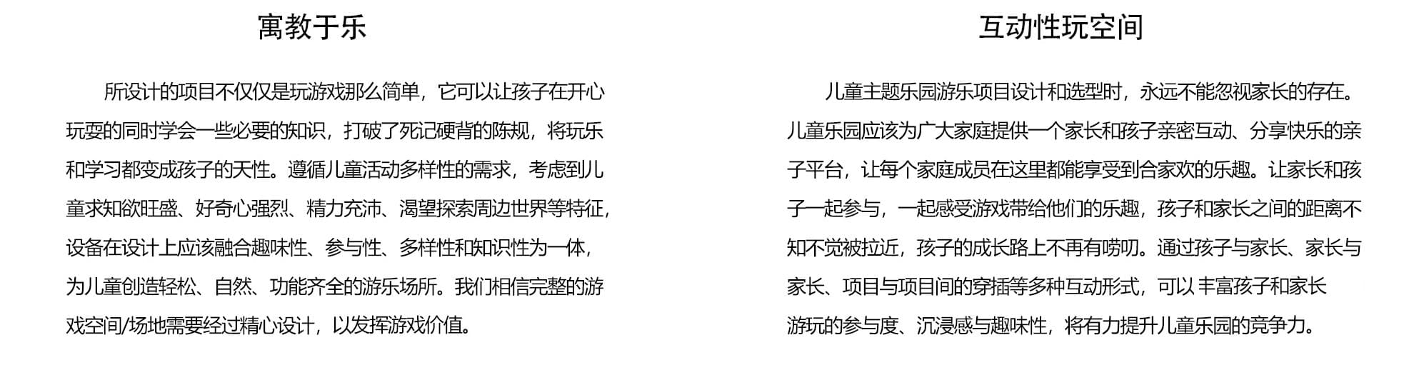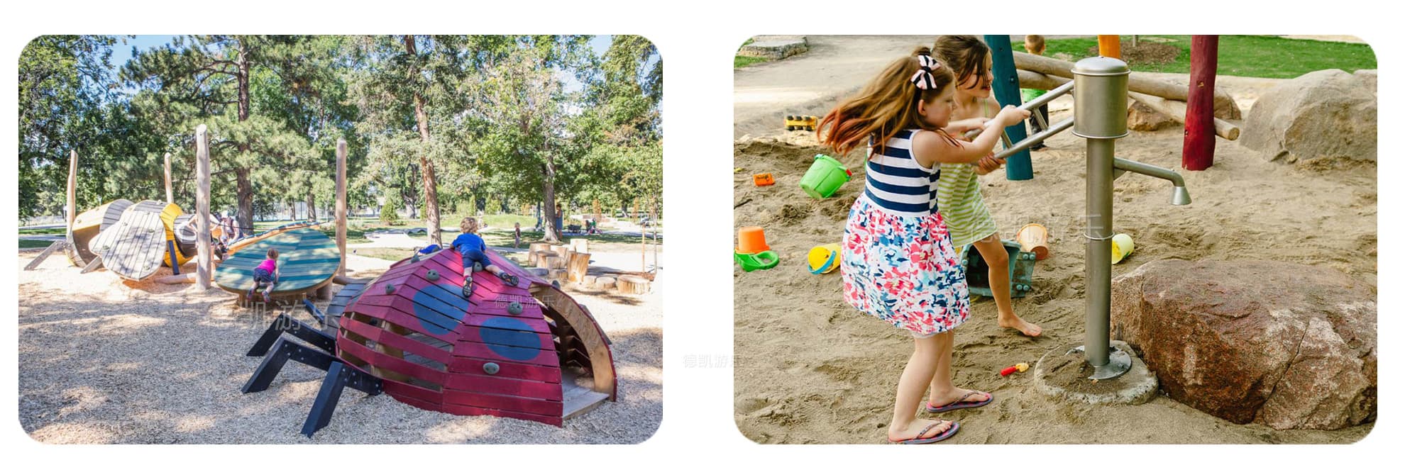 所以德凱設計團隊總是帶著一個問題去設計整個游樂場項目。孩子們想從這個游戲空間中得到什么?我們的目標是為每個孩子提供參與和愉悅的機會,盡可能提供游戲價值。隨著我們建立的每個新的游戲空間,我們傾聽并向我們創造的孩子們學習。德凱游樂擁有一支專業的場地規劃設計團隊,從實地測量到場地功能區劃,再從CAD制圖到3DMAX模型制作等每一個環節,工作人員都認真負責,場地規劃設計方案客戶滿意度高。每個游樂場設計都必須遵循六個設計原則: